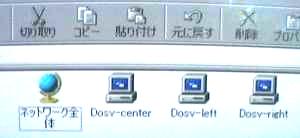 学校LANも便利です職場でのLANは便利でいいよ!ってよその先 生方には宣伝しています。 と、ところがどうしてかトラブルが突然発生した り、ひどい時にはWindows を壊してしまうのですね。 で、印刷できない。ファイルが見えない。って全然 ダメ…!が出てくるとゾーってします。 仕事が重なってくるような時に、トラブルが続くの です。どうしてなのでしょうか。これでは自称ネットワーク管理者の私、私の信用はま るでなくなるのです! そこで、家で何台ものコンピュータをつないでLANの勉強を積んでいます。 ほら、家ではちゃんとつながっているでしょう。画面では3台がうまくネットワークを 構成してますね。他に無線LANも使えるようにして快適なんですよ。 画面に互いに見える姿を確認してニンマリの毎日です! -- back --