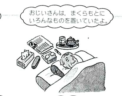 爺ちゃんと教科書 ウチの爺ちゃんは居間を散らかして困る。何度かたづけてもまた本や眼鏡、 ペンの類がズラズラと一列に並ぶのである。「爺ちゃん、此処は居間なんだ から、もう少し整理してもらわないと、客が来ても恥ずかしくて堪らんよ。」 っと話はするが、効き目がない。 整理用に小さな書棚を購入してやったが、それはそれ、結局は畳の上に並 べないと気が済まないらしい。 何て変な趣味なんだ…と思っていたら、今回改訂した「技術・家庭科」の 教科書にチャンと載っているのだから驚きだ。 やっぱり、年取ると誰もが同じ傾向になるのでしょうか。