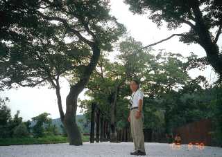 ています。後ろに校舎、写真の真ん中に私が立っています。