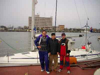 2月13日外国のヨットが来たから…と連絡を受けてフリートへ行ってみました。 海上保安が信濃川の真ん中にアンカリングさせてましたので、そこまでボート で行き、ヨットに乗り移って、一緒に走って台船へ着けました。ヨットは「Sea- Wind」 BAVARIA36 でした。 艇長はアンドレィ(写真の身長の低い方)、クルーはアレクセイさんでした。 この冬の海を平気で走ってくる勇気と技術に驚いてしまいました。 2人は新潟に住んでいる仲間と連絡をしていたようで、後で2人来てくれまし た。一人の男性はセリバノフ マキシムという方で日本語が通じ、通訳をしてもら い、ようやくほっとしました。センチュリー東京コーポレーション(五十嵐2の 町 025-201-8606)に勤務されています。 カムチャッカのある港から来たそうです。日本まで、ざっと2000海里はあるよ… とか言ってました。その日はお友達もいたのでそれで別れたのでした。 ところが18日にそのロシア人から「ちょっと力になって欲しい」と電話をい ただき、結局夜10:30まで付き合うこととなってしまいました。 いろいろありました…が、先ずは彼らが新潟で銀行口座を作りたいと言ってい たのですが、話が分からないので、麻生さんと一緒に行きました。 どうも新潟の銀行に口座を設け、クレジットカードを発行して欲しいような話 でした。麻生さんはきっぱりと It's defficult… と言ってくれて終わりました。 無理ですよね…住所が無いのだから。 その後、軽油を買いに出かけましたが、何と190 リットルもですよ。麻生さん はしばらくすると奥さんが迎えに来て帰ってしまったのです。奥さんの紹介をど うしたと思いますか? My Wife , japanise beauty とか言ってましたよ。 彼らが「みなとぴあ」へ行きたいと言ってるのに、「忙しくてダメ.…でも Mr.hattori have a all free Time とか言ってくれるので結局3人で見学するはめ になりました。終わってからスーパーの買い物でした。醤油とめんつゆを間違える など1つ1つが大変。特にニンニクは1個250円もしたので、expensive と言って ました。無農薬で特別のものなのでこの価格なんだ…とか(伝わったのかな)ハハ ハ…でした。その後は\100shop でカップ麺をあるだけの種類を集めて買ったりと変 な3人でした。夕方私のヨットの中でコーヒーをご馳走し、締めくくりはメッセで デナーでした。彼らにだけ日本酒を呑ませた訳です。 前から痛かった私の背中が痛みだして来て、パソコンで、彼らの持っていた写真 を3,000枚くらい見せられたのですが、固有名詞がもう全く記憶に残ってません。 フィリピンや釜山での画像もたくさんありました。まあ良い生活をしているよう でしたね。 -- もどる --