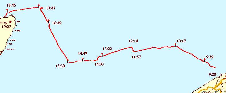 2時頃までは何とかまだ小木を目指して大波に突っ込んで走ったが、風と潮流も強く、1km/h程の