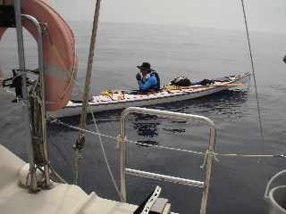 佐渡〜粟島 横断カヌー旅行をしよう! こんな旅行を提案したのは昨年のことで、もう忘れかけていたのだが、目黒、佐藤両氏が 誰もチャレンジしていないと思うのでやってみる…と意欲満々、タンデム艇を持ち込んだ。 8月2日は午後から…と言うので、カヌー3艇を積み込み大川へ(泊)3日は鷲崎まで走り、 大野亀まで足慣らし。4日朝5時出発。夕方5時に粟島へ到着したのでした。 頑張ったね〜 5日またカヌーを積み込み、新潟港へ戻ってきました。 |