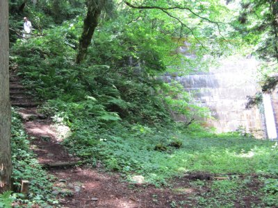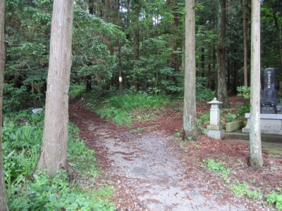 商工会の駐車場から登山口へ通じる墓場の道を左へ