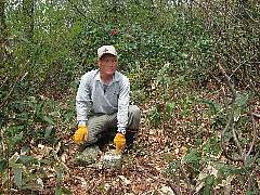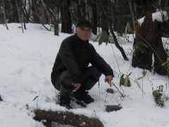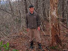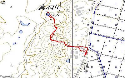 岳岡山の帰りにこの真木山へ挑戦する。雪があれば楽かなと思ったが、案外に厳しい。瑞波集落の神社裏が沢に なっており、ここから高い所を目指す。するとGPSは数百m 先を指し示す。この高い山は102m地点だ。その後尾根を 下るが、ゴルフ場の支柱脇を通って、作業道路も越えて、 削り取られた小さな山に再度登ることとなる。 この山の真ん中が頂上の筈であるが、GPSの指し示す点 には三角点は無かった。高度計も間違いなく、この辺だ …と写真を取った(左)。探し求めてしばし…でも無い! 諦めて帰路についた。 |
