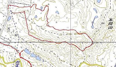 県道を本田から滝沢集落へ向かう。滝沢の入り口付近にため池が有り、その手前から送電線連絡路を 歩く、しばらく進むと山へ向かっての踏み跡があった ので、ここを進む。頂上へ近づくにつれて踏み跡も 怪しくなり、尾根らしき所を見当つけて進む。 進むほどに遊歩道からの道らしきものになり、三角 点が見つかる。本田山と言えば有名であるが、遊歩 道だけで、登山道は本当に怪しい。帰路も赤テープ を頼りに藪漕ぎをしたが、結局見失い、最後は中峰 ゴルフ場へ下る。シーズン前だったので我が物顔で 歩いて帰った。 |