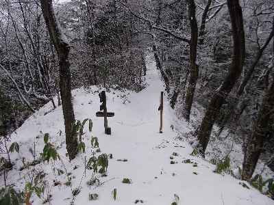 | 県道脇の登山道入り口 | 脇の登りの道 | 公園からの合流点(案内板あり) |