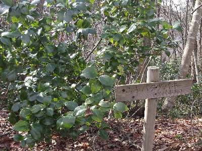 | F広葉樹林の中でお休みを | Gユキバタツバキの看板が | H菩提寺山頂上の看板前で |