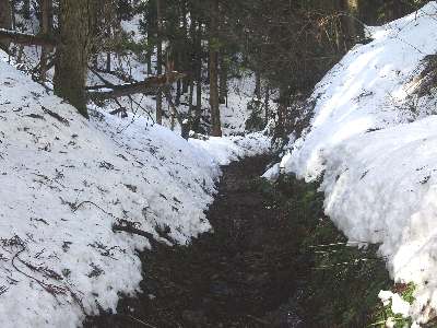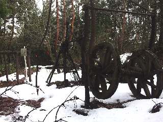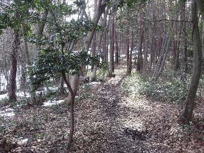 他のコースは杉林ばかりですが、ここはナラやイヌシデの林で、ログハウスや炭焼きがまもあります。