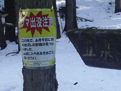 | I階段コースから臍清水へ | J滝を目指して下ります | K途中に熊注意の看板が |